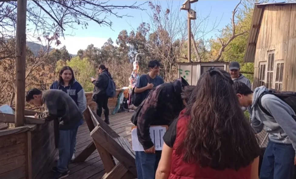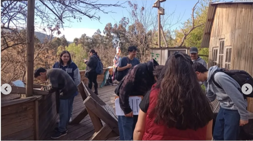 Charla a estudiantes de pedagogía de la Universidad Autónoma Talca, 2024, sobre patrimonio natural y educación artística, en Punto de Observación de Aves del Centro Cultural Kuraf Werken.